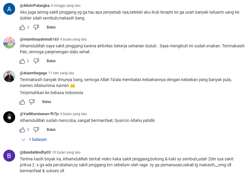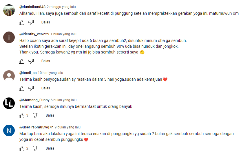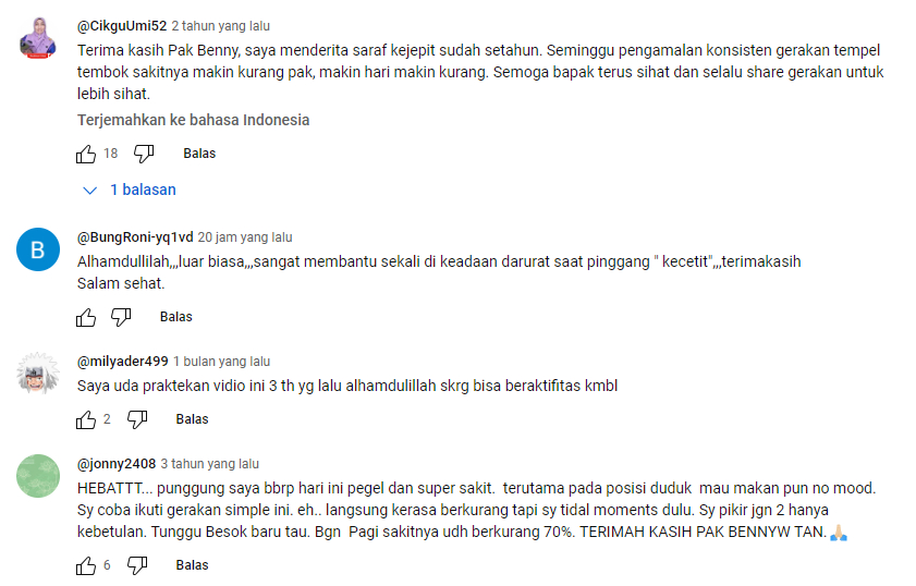 Beberapa Testimoni dari Beberapa Video tentang terapi Saraf Kejepit